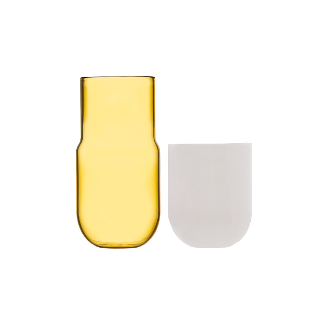 Our carafe and cup transform hydration into pure joy. This pill-shaped carafe blends minimalist design and practicality so you can refresh your daily routine at work or play with an extra dose of fun.