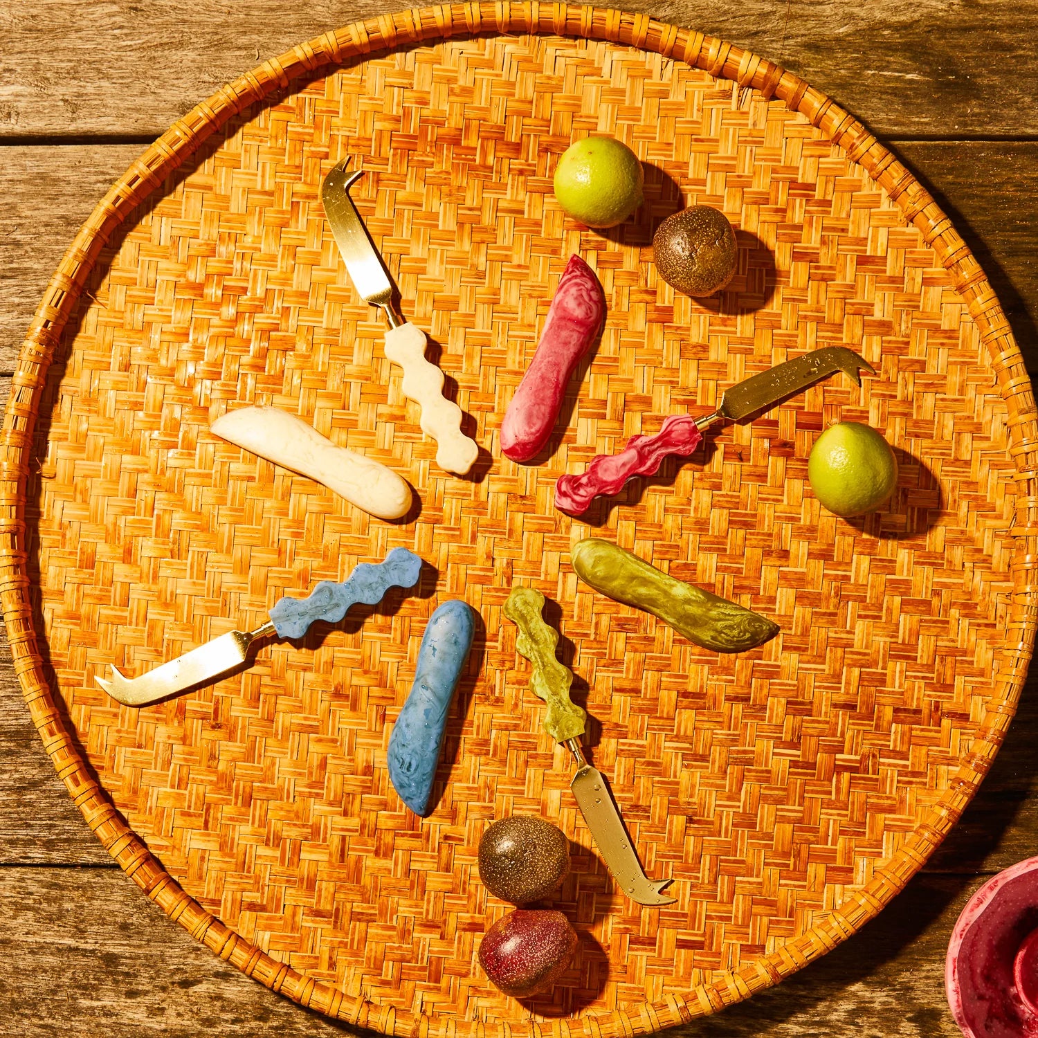 Sleek, sculptural, and anything but ordinary, our resin spreader knife pairs bold curves with a refined finish. Designed to elevate any occasion from laid-back grazing plates to artfully arranged charcuterie spreads.
